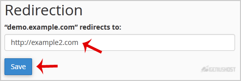 5. Under the Subdomain Redirection option, you should enter the link to which you want to redirect the subdomain in the available text box.