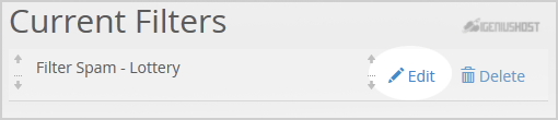 3. Under Current Filters, You can see all of your existing filters, Click on Edit next to the appropriate one.