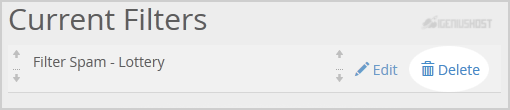 2. Under Current Filters, you can see all of your existing filters. Click on Delete next to the appropriate filter name.