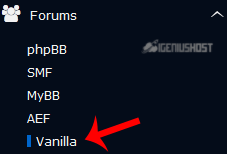 4. On the left side of your screen, you should locate the Forums category. Click on it and then click on the Vanilla link that will appear.