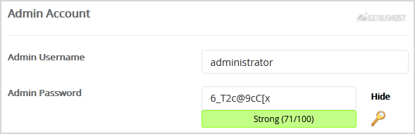 7. Under the Admin Account field, enter the following information: