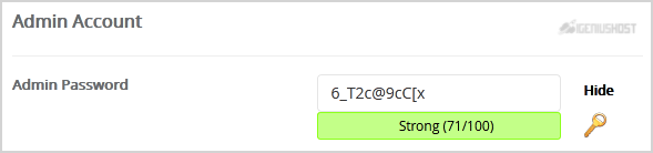 8. Under the Admin Account field, enter the following information: