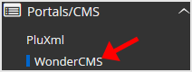 4. On the left side of your screen, you should locate the Portal/CMS category. Click on it and then click on the WonderCMS link that will appear.