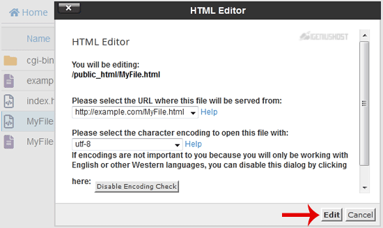 6. If the small HTML Editor window is open, click on the Edit button, which will open a new window with options you can edit.