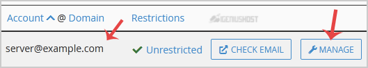 4. If your email address is server@example.com, you should see a Manage option on the right side of your email address. Click on Manage.