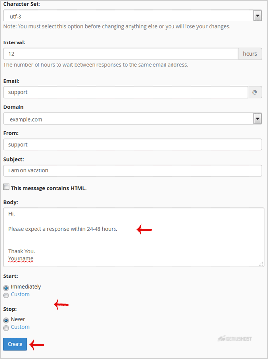 4. In the Interval field, specify the number of hours you wish the autoresponder to wait between responses to the same email address.