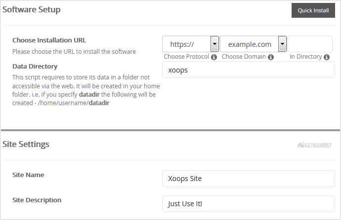 - Choose Installation URL: Choose the appropriate protocol/domain. Inside the "In Directory" field, should you want to install this in a directory, i.e., example.com/directory, enter the directory name. Otherwise, leave it blank to install in your main domain, i.e., example.com